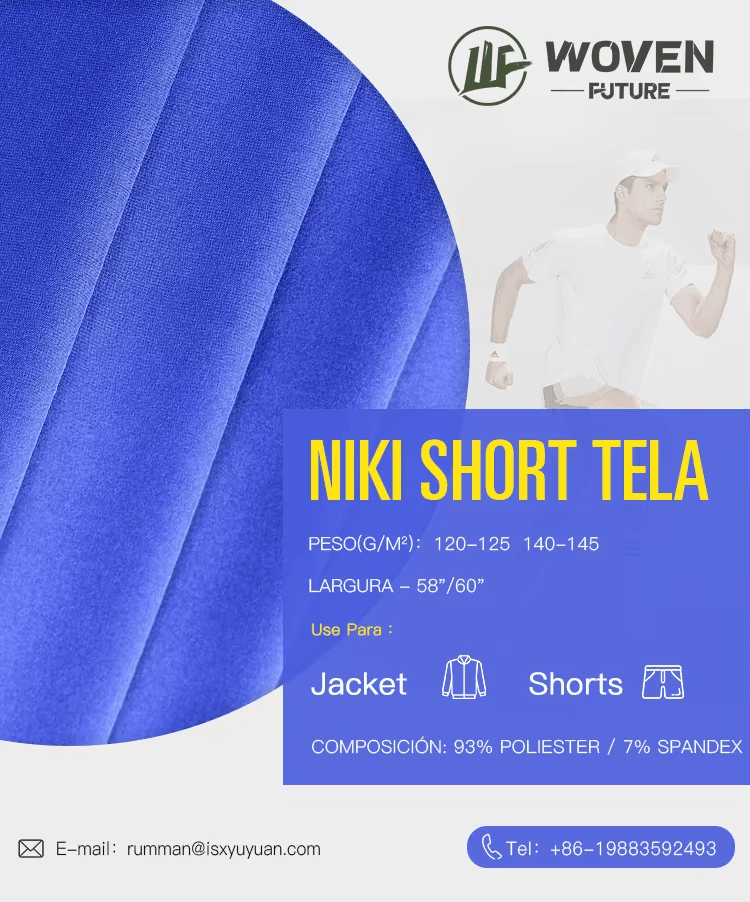 Shaoxing Wovenfuture 100d 120gsm Tela Licra Tejido Niki Short Polyester Sports Wear Stretch 4-Way Stretch Microfibra Fabric