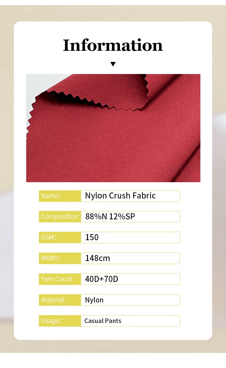 Shaoxing Wovenfuture 88%N 12%SP waterproof four way stretch sportwear 70d nylon crush fabric for casual pants